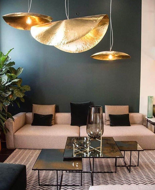 Brass Suspension with Hammered Plate Shade - Handcrafted Elegance