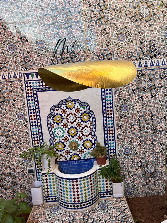 Handmade Brass Moroccan Ceiling Light with Geometric Pattern - Perfect for Home and Restaurant Decor