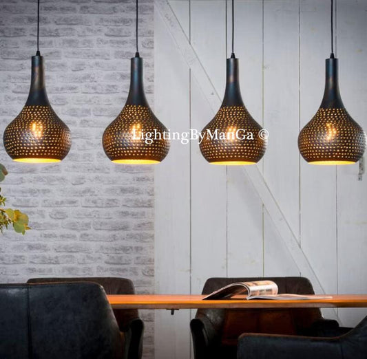 Handmade Black Moroccan Chandelier for Kitchen Island Lighting and Home Decor - Unique Metal Ceiling Light Fixture