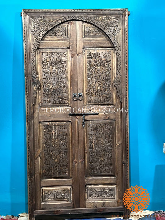 Porte Marocaine Traditionnelle Porte en Bois sculptée Porte Marocaine Sculpté a la main , Porte en Bois Massif