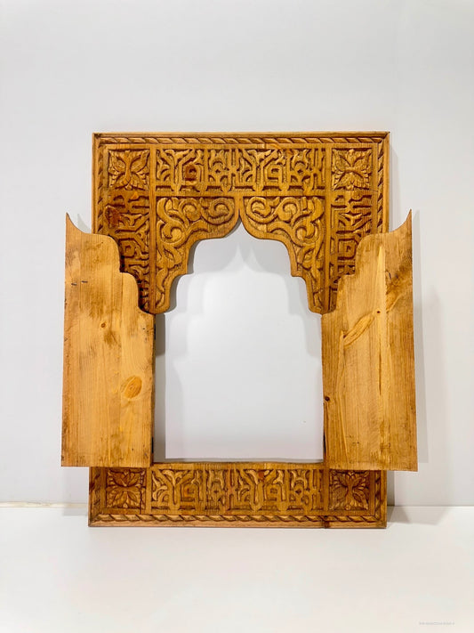 Hand Carved Wooden Mirror - Window - Moroccan artisanal craftsmanship - Exquisite wooden costume size