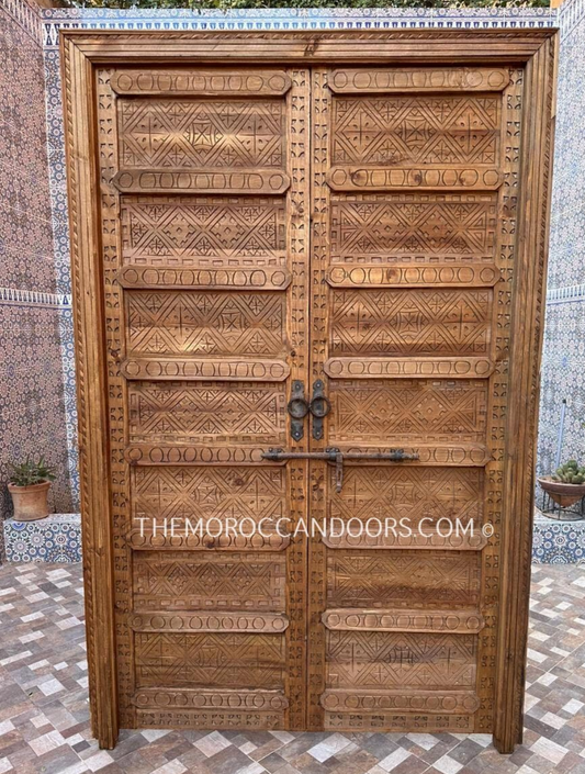 Perfect for Interiors & Exteriors Handcrafted Double Door with Berber Front Design. Authentic Moorish Artwork, Intricate Geometric Carvings.