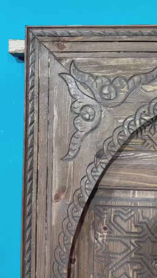 Porte Marocaine en Bois - SCULPTÉ DEUX CÔTÉS - DOUBLE GARNITURE SCULPTÉ