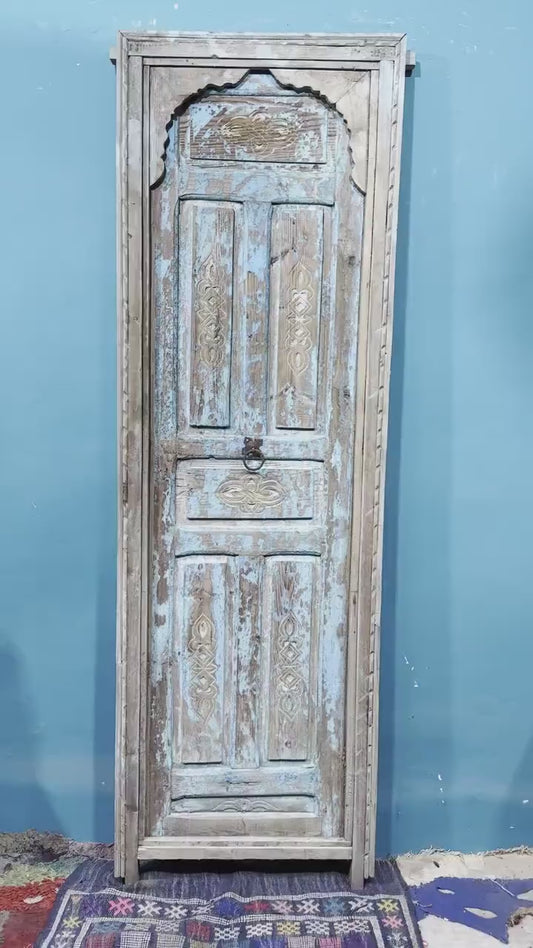 FREE SHIPPING: Beautiful Wooden Old Door With Frame, Hand Carved Wooden Moroccan Vintage door.